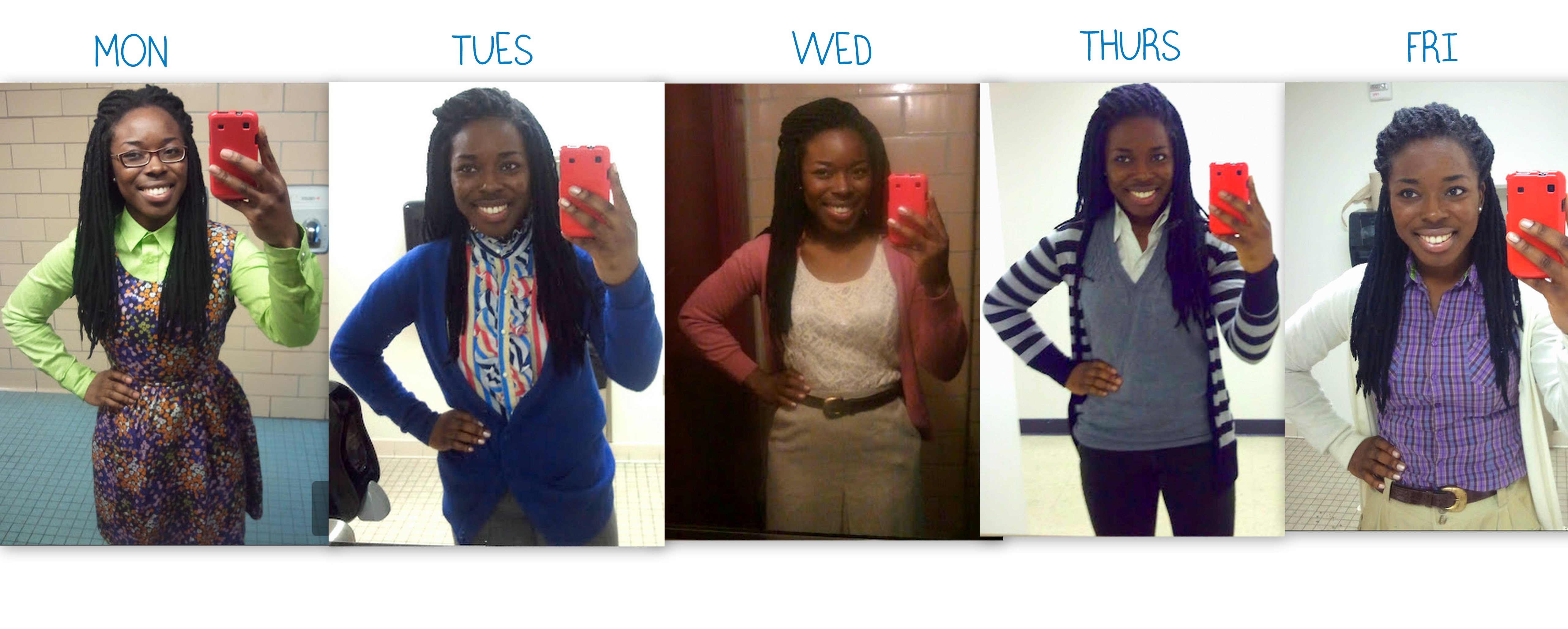 Wednesday was my favorite outfit, Monday was my next favorite. Friday’s was really comfortable except for the shoes. I need to get over my height insecurities and invest in some good ole flats.