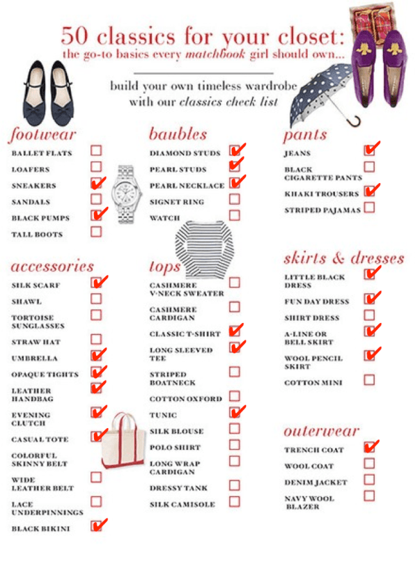 Classic Wardrobe Pieces March 15, 2012FashionClassics, WardrobeTimiKomo I went ahead and checked off the items I already own. Share this: Click to share on X (Opens in new window) X Click to share on Facebook (Opens in new window) Facebook Click to share on Pinterest (Opens in new window) Pinterest More Click to share on Tumblr (Opens in new window) Tumblr Like Loading... Related