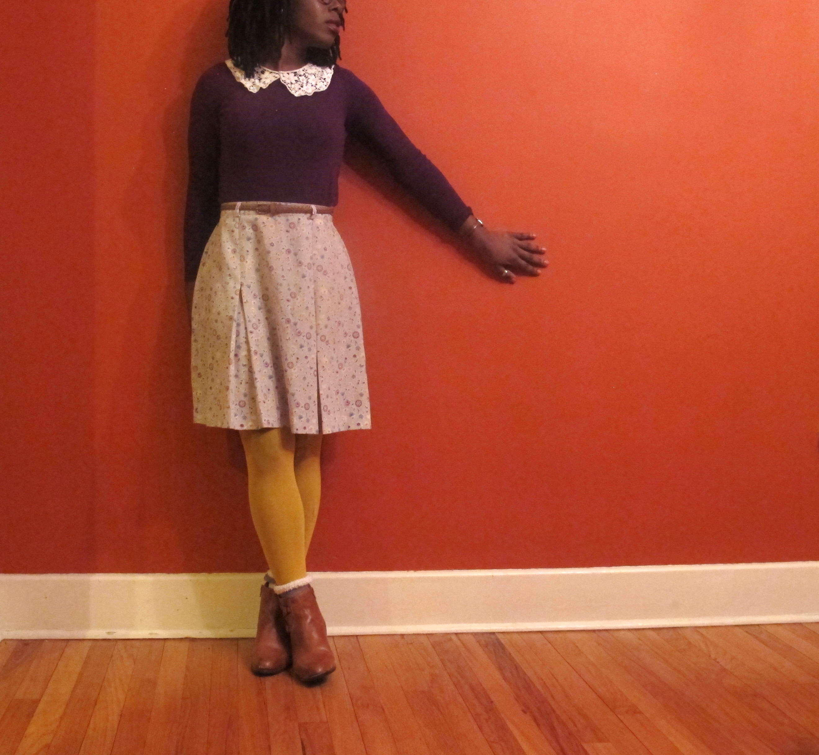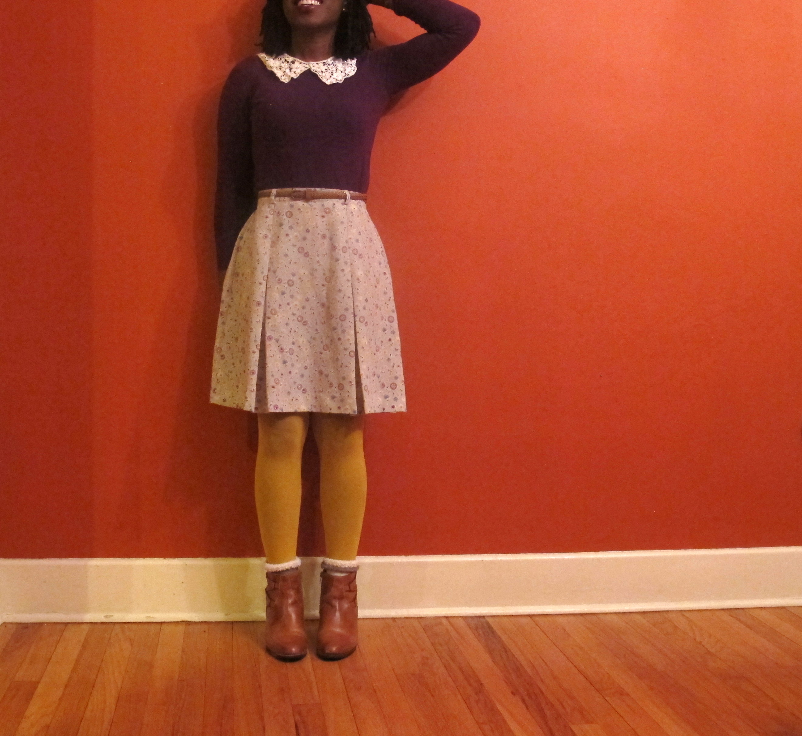 This outfit was for me. I had nowhere special to go and no one particularly important to see. I dressed like this to reflect how happy and content I am. I’m in a good place despite it being less than 20 degrees outside. My skirt has flowers on it to remind me that one day soon the flowers will bloom again. All things that were once dead will come back to life.