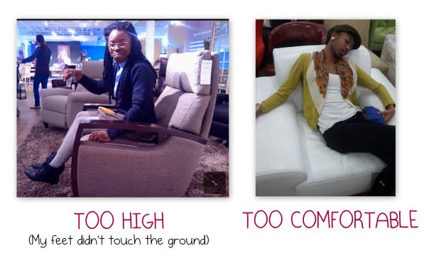 I saw cute little armchairs, delectable low beds, and I finally saw the stupendous floating bookshelves I’ve been seeing all over Pinterest. The best part was that everything was all out in the open and you could sit on the furniture to see if you liked it: