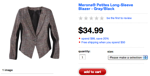 I love the helpful Target staff in my neighborhood. One of the ladies in charge of the fitting room gave me a heads up that these Merona blazers were on sale.