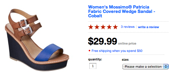 I am mostly a flats-and-loafers girl. I spied these awesome wedges after my sister told me they were in the clearance section. They dress up any pair of blue jeans. They give me height without wearing down my feet. What’s not to love ?