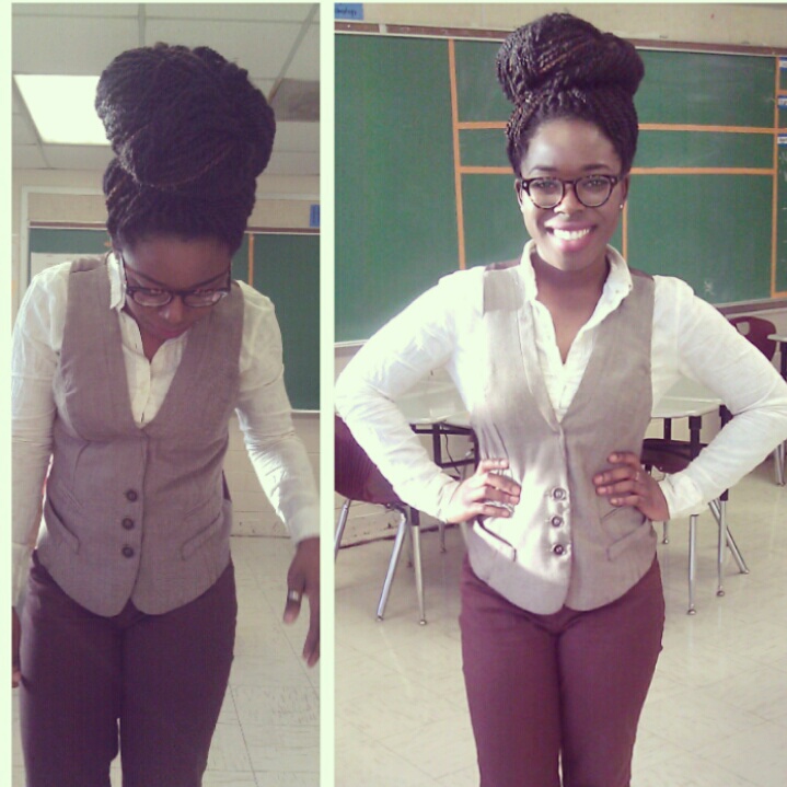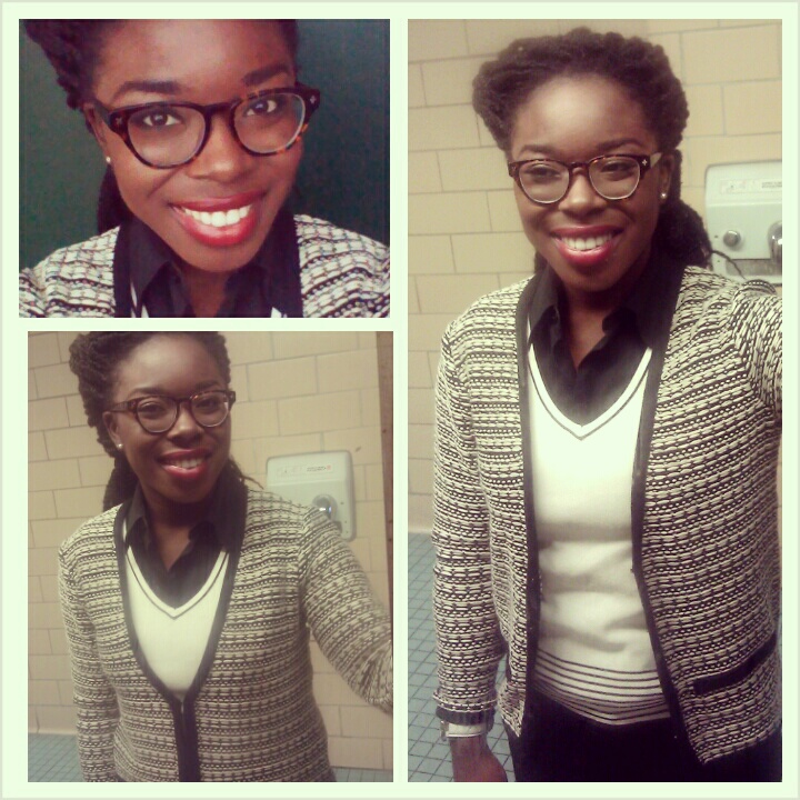 I had my hair in coils all week. At this point, the coils are about a month old. I started experimenting with updos and finally settled on the basket weave technique or the the “lobster tail” that many loc’d individuals sport. All you do is layer strands of hair on top of one another in chunks. I used to do this style with my yarn braids for updos.